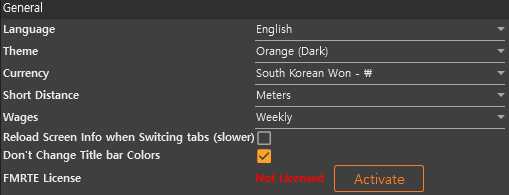 상단에 FMRTE 버튼에 마우스를 올리면 보이는 설정(Settings) 클릭